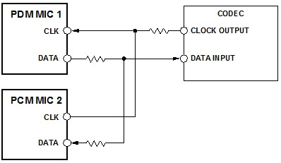 圖7:PDM麥克風以源端接方式連接到編解碼器