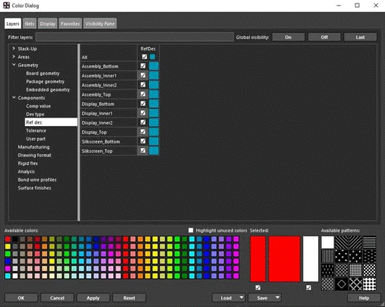 PCB CAD 系統(tǒng)用于設(shè)計(jì)顏色的參數(shù)設(shè)置菜單