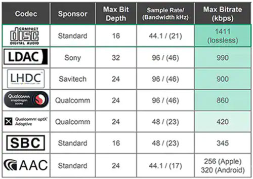 表 1:“無損”編解碼器(Sony、Savitech 和 Qualcomm)與 CD 質(zhì)量和有損編解碼器(Qualcomm 和藍(lán)牙技術(shù)聯(lián)盟 (SBC))的比較。請(qǐng)注意,無損編解碼器的最大比特率受限于藍(lán)牙無線鏈路的能力。(圖片來源:Knowles)