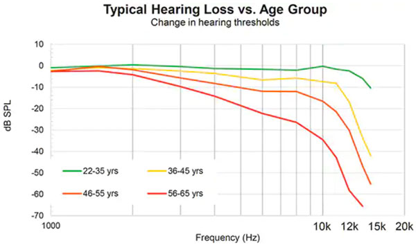 圖 2:隨著用戶年齡的增長,他們逐漸失去了聽高頻率的能力。個(gè)性化的聲音提升了選定頻率音量,以補(bǔ)償聽力敏感度的損失。(圖片來源:Knowles)