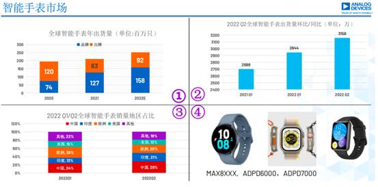 智能手表行業(yè)是近幾年少有的在消費(fèi)類市場(chǎng)上持續(xù)保持穩(wěn)步上升的。從2020年到2022年,總出貨量呈兩位數(shù)增長(zhǎng),品牌占比也有所增長(zhǎng)。中國(guó)智能手表市場(chǎng)份額占28%,位居榜首,歐、美在下降,印度在上升。從中可以看出國(guó)人對(duì)智能手表包括對(duì)健康的領(lǐng)域關(guān)注程度很高。