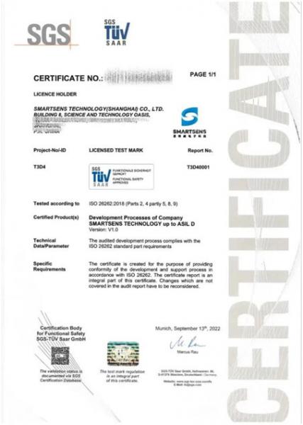 思特威已于本月8日成功獲得ISO 26262:2018汽車功能安全流程ASIL D認(rèn)證證書(shū),這也是思特威在精進(jìn)車規(guī)安全開(kāi)發(fā)體系與流程、打造先進(jìn)車規(guī)級(jí)芯片、推動(dòng)智能汽車行業(yè)高質(zhì)量發(fā)展等方面取得的實(shí)效。