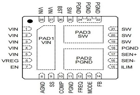 5.集成MOS與小體積封裝:封裝為QFN5*5-28,散熱好效率高,還能做到外圍元件少,PCB面積小。