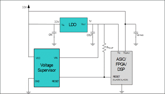 圖3、顯示了監(jiān)控器與低供電電壓ASIC/FPGA/DSP的接口