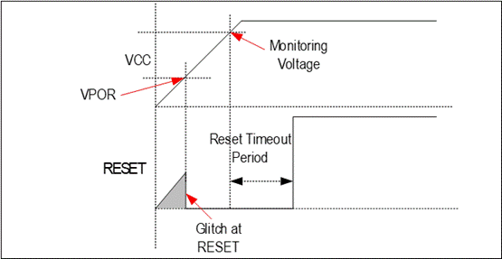 監(jiān)控器IC需要一個稱為上電復(fù)位(VPOR)的最低電壓來生成明確或可靠的復(fù)位信號,而在此最低電源電壓到來之前,復(fù)位信號的狀態(tài)是不確定的。一般來說,將其稱之為復(fù)位毛刺。