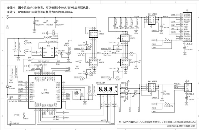 M12269 支持PD3.1等快充協(xié)議、140W升降壓3-8節(jié)多串鋰電充放電移動(dòng)電源管理IC方案