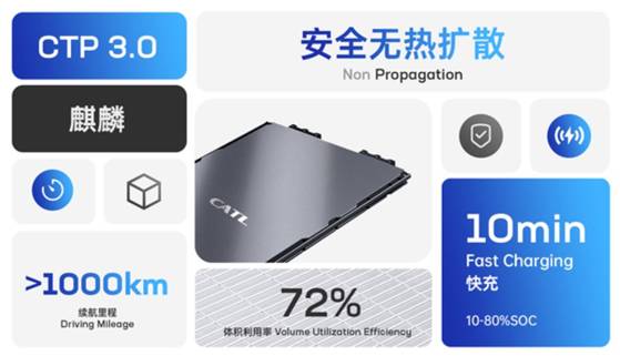 新型電池形態(tài)是一種籠統(tǒng)的表述,包括化學材料和物理結(jié)構(gòu)兩方面的創(chuàng)新。以寧德時代麒麟電池為例,化學材料創(chuàng)新包括先進的高鎳811技術(shù)、摻硅補鋰技術(shù)等;物理結(jié)構(gòu)創(chuàng)新主要是指獨創(chuàng)的CTP高效成組技術(shù)。通過采用新的電池形態(tài),麒麟電池能量密度達到了255Wh/kg,體積利用率突破72%,10分鐘可充電達到80%,并讓車輛續(xù)航可以輕松突破1,000公里。