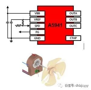 另外,A5941芯片還集成有EEPROM存儲單元(詳見下一期介紹),根據(jù)應用需要,可以通過更改在EEPROM內(nèi)存儲的配置指令,定制電機的啟動。電機的轉(zhuǎn)速調(diào)節(jié)是通過控制PWM輸入信號的占空比來實現(xiàn),該PWM信號的允許頻率范圍非常寬。根據(jù)需求,配置EEPROM也可以設定通過模擬電壓輸入來調(diào)節(jié)電機轉(zhuǎn)速。A5941芯片可以實現(xiàn)在無需外部霍爾傳感器的情況下,檢測三相電機轉(zhuǎn)子位置。這種技術的優(yōu)點不僅可以省去因霍爾傳感器的損壞而帶來的維護問題,提高風扇電機的可靠性,擴大應用范圍,降低生產(chǎn)成本,而且也能消除因傳感器的不一致而產(chǎn)生的檢測誤差。A5941芯片采用了10引腳的SOIC封裝形式。