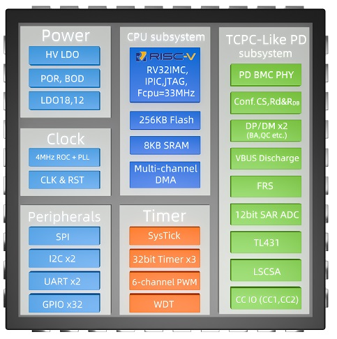 UM3506芯片集成了USB PD 3.0, PD3.1控制器和一個(gè)更加具有開放性,靈活性的RISC-V 內(nèi)核處理器。該系列產(chǎn)品可以用來支持增強(qiáng)型PD應(yīng)用。該款芯片全面滿足USB開發(fā)者論壇組織定義的USB3.1標(biāo)準(zhǔn)集里面的相關(guān)規(guī)范。