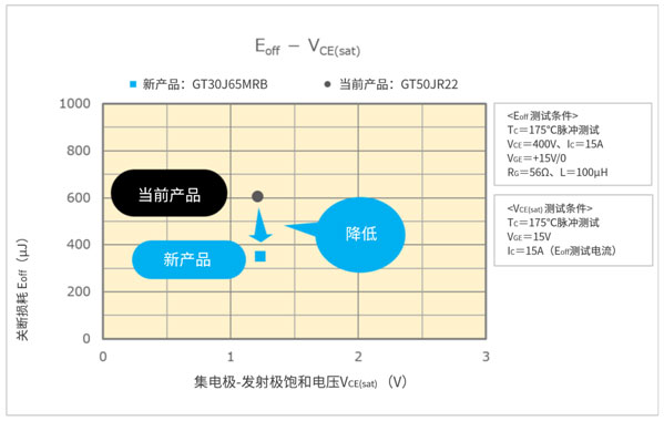 - 行業(yè)領(lǐng)先[2]的低開關(guān)損耗(關(guān)斷損耗):由最新工藝實現(xiàn)的Eoff=0.35mJ[3](典型值)