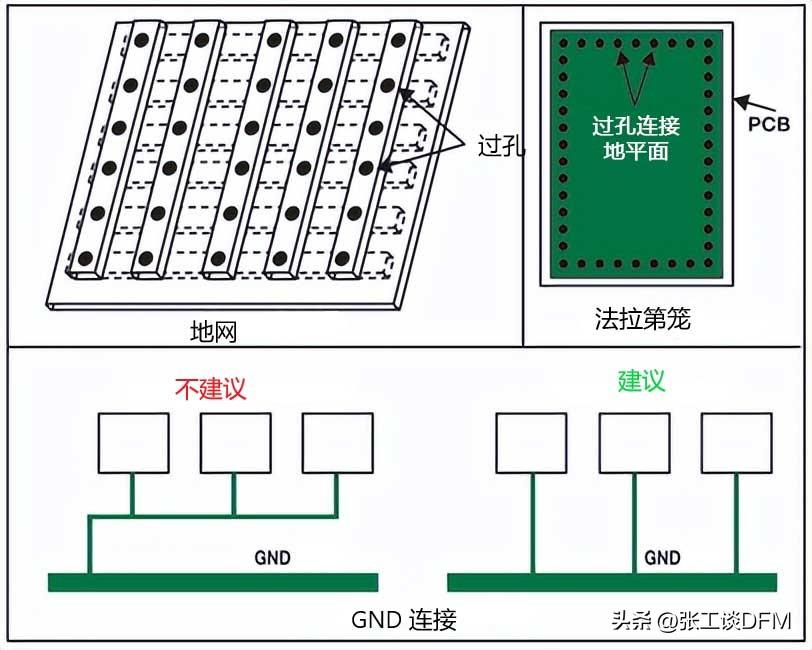 在PCB設(shè)計(jì)中最常用的就是低電感接地系統(tǒng)。最大化PCB上的接地面積可以降低系統(tǒng)中的接地電感,這樣可以減少電磁輻射和干擾,可以使用不同的方法將信號(hào)接地。