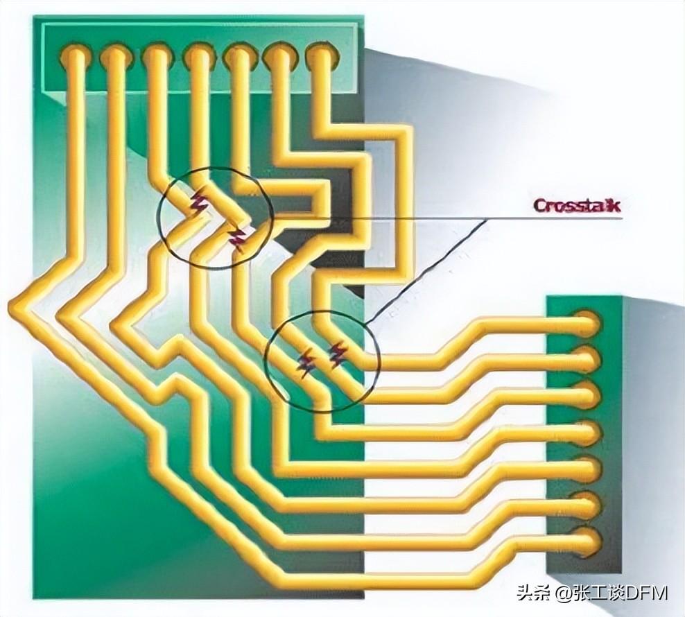 串?dāng)_用于識(shí)別由 PCB 上的一條軌道到附近另一條軌道的電磁噪聲引起的干擾。PCB 中的串?dāng)_通常發(fā)生在同一層中并排的軌道或相鄰層中的一個(gè)軌道上。這種情況表現(xiàn)為噪聲,如果振幅過(guò)大可能會(huì)導(dǎo)致故障 。