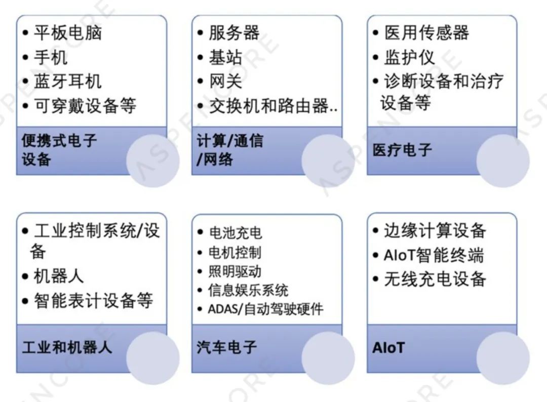 關(guān)鍵應(yīng)用:筆記本及平板電腦、智能可穿戴設(shè)備、電動(dòng)工具、充電類產(chǎn)品、輕型電動(dòng)車輛、智能家電、智能手機(jī)、無(wú)人機(jī)等。