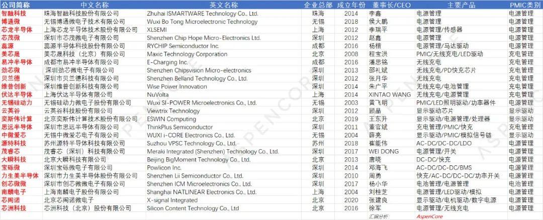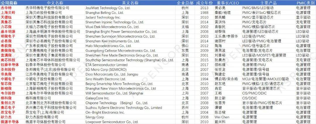 一、50家國(guó)產(chǎn)PMIC廠商基本信息匯總
