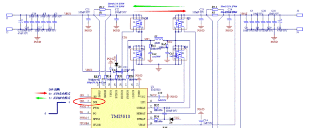 TMI5810支持雙向充放電,通過DIR管腳即可輕松控制充放電過程——
