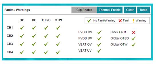 如果喇叭不僅僅在開(kāi)機(jī)或者狀態(tài)轉(zhuǎn)換時(shí)出現(xiàn)pop 音,而是當(dāng)功放從Hi-zi切換到play時(shí),連續(xù)出現(xiàn)POP noise,此時(shí)應(yīng)當(dāng)檢查是否出現(xiàn)Clock Fault。硬件工程師可以斷開(kāi)SOC的IIC控制,并將IIC通過(guò)USB轉(zhuǎn)接板連接到PPC3進(jìn)行Clock Fault檢驗(yàn)。