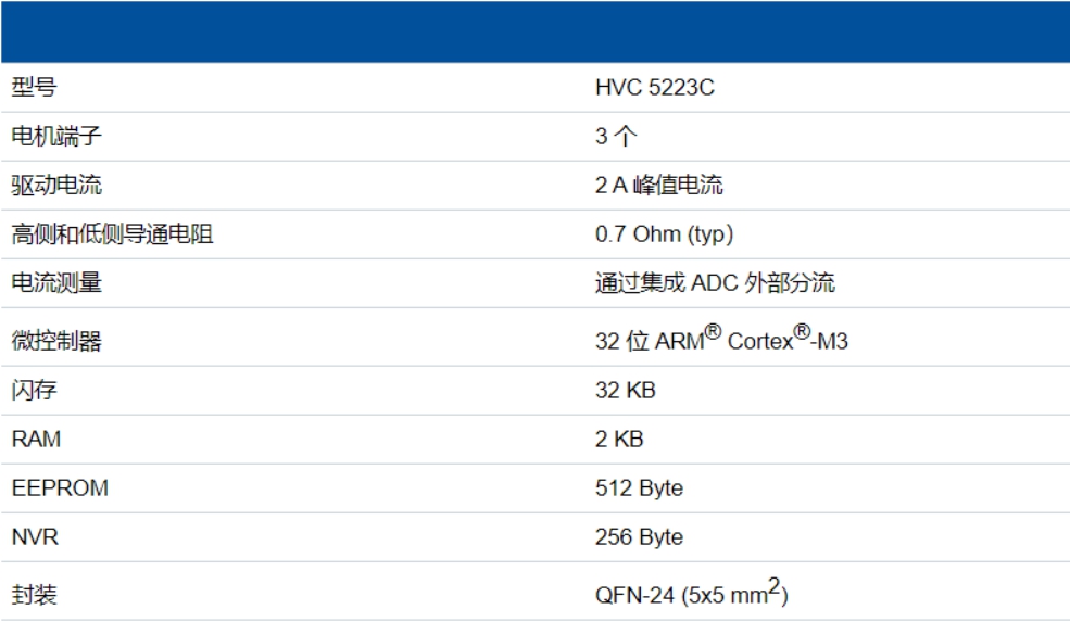 TDK 株式會(huì)社 正在擴(kuò)大其 Micronas 嵌入式電機(jī)控制器系列 HVC,并推出 HVC 5223C。這是一款經(jīng)認(rèn)證 的汽車級(jí)一級(jí)產(chǎn)品,全集成電機(jī)控制器,可驅(qū)動(dòng)峰值相電流為 2 A 的小型有刷(BDC)或無(wú)刷(BLDC)電機(jī)。HVC 5223C 采用緊湊型 5x5 平方毫米 24 針 QFN 封裝,在功能上與 HVC 5222C 引腳兼容,HVC 5222C具備1A峰值電流能力。樣品現(xiàn)可供客戶評(píng)估。