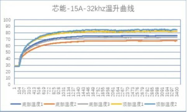 XNC20S12FT 新品SiC智能功率模塊在整機運行實驗中表現(xiàn)優(yōu)秀,在較高工作載波頻率(32KHz),負載電流為80%的額定電流的工況下溫升表現(xiàn)良好,電流、電壓波形穩(wěn)定無明顯尖刺干擾,能保證電機的穩(wěn)定、高效運轉(zhuǎn)。