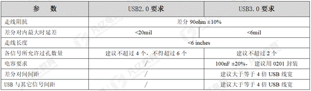 USB2.0與3.0的PCB布線要求對(duì)比如下表1所示:
