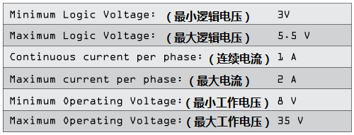 因為A4988內置了譯碼器,我們可以可以通過控制器的2個引腳來控制步進電機,一個控制旋轉方向,另一個控制步數。A4988提供了五種不同的微步控制:全步(full-step),半步(haft-step),四分一步(quarter-step),八分之一步(eight-step)和十六分之一步(sixteenth-step)。此外,它還配備了一個調節(jié)電流輸出、過熱保護和過流保護的電位計。A4988的邏輯電壓范圍是:3~5.5V,如果配備較好的散熱條件每相最大電流可達2A,在沒有配備散熱器的情況下,每相連續(xù)電流最好控制在1A范圍內。