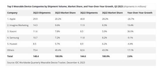 2023年第三季度全球可穿戴市場(chǎng)情況