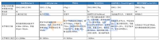 圖注:國內幾家主要人形機器人的關節(jié)電機對比(不完全統(tǒng)計,芯查查制表)