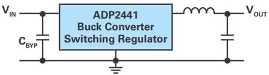圖1. ADP2441 開關(guān)穩(wěn)壓器,輸入端具有旁路電容CBYP
