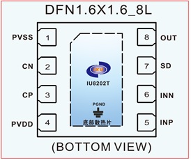 IU8202T可向16Ω負載提供高達400mW輸出功率,THD+N僅為0.006%。217Hz時具有86dB的高電源抑制比(允許該器件工作在嘈雜的數(shù)字電源,無需額外的線性穩(wěn)壓器件)。精巧的咔嗒聲抑制電路消除了啟動與關(guān)斷過程中的可聞噪聲。低功耗關(guān)斷控制,可以在混聽模式有效的節(jié)省能源。IU8202T工作電壓范圍在2.5~5.5V, 待機時僅消耗1.3mA電源電流, 具有短路保護與熱過載保護 .IU8202T封裝形式為DFN1.6X1.6_8L,其額定的工作溫度范圍為-40℃至85℃。