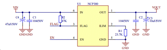 既然NCP380芯片具有限流的保護功能,那如何判斷電路是否過流了呢?工程師可以通過檢測芯片的FLAG引腳的高低電平來判斷。