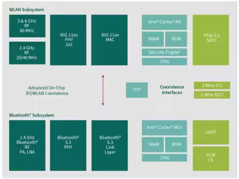 圖 1:CYW5557x 系列結(jié)合了物聯(lián)網(wǎng)設(shè)備的 Wi-Fi 和藍(lán)牙連接功能。(圖片來源: Infineon Technologies)