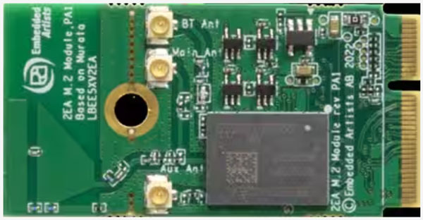 圖 2:AIROC CYW55573 的 EAR00413 評(píng)估板采用 M.2 外形。(圖片來源:Embedded Artists AB)