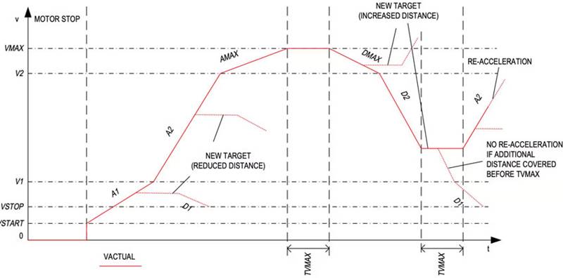 圖 6:TMC5240 提供八點(diǎn)斜坡,支持實(shí)時(shí)目標(biāo)位置更改,可實(shí)現(xiàn)順暢的模式轉(zhuǎn)換。(圖片來(lái)源:Analog Devices)