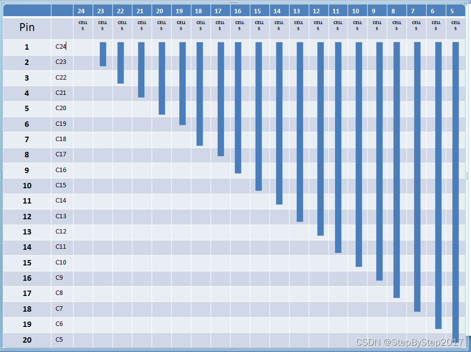 集澈DVC11系列分別有DVC1124,DVC1117,DVC1114,DVC1110等4個芯片,都是4串起步,4-24,4-17,4-14,4-10串,這里主要說明DVC1124減少串數(shù)的接法。