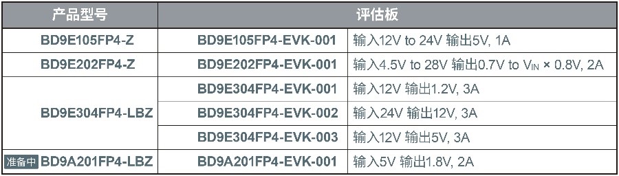 “BD9E105FP4-Z / BD9E304FP4-LBZ / BD9A201FP4-LBZ”