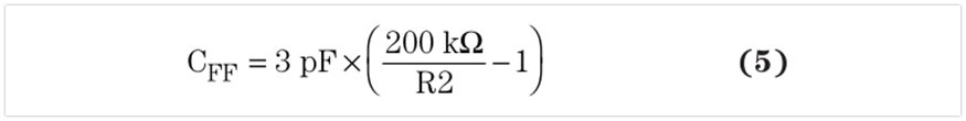 如果設計人員必須使用前饋電容來提高穩(wěn)定性,且一些轉換器的內部補償要求特定的CFF值。這種情況下,不應使用方程式4。設計人員應使用產(chǎn)品說明書的建議設計方程式。例如,TITPS61070便有高側反饋電阻器(R1)的內部補償。它的產(chǎn)品說明書建議使用下列設計方程式,用于添加一個與R1并聯(lián)的電容: