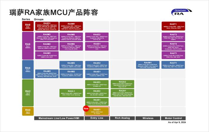 瑞薩推出全新RA0系列超低功耗入門級MCU