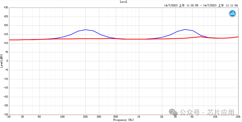 另外一個(gè)弊端例如傳統(tǒng)DRC信號突變時(shí),前幾個(gè)波形失真的問題。由于傳統(tǒng)DRC是計(jì)算RMS,必然有幾個(gè)周期的波形是可能失真的。ACM8687除了RMS DRC之外,采用專利技術(shù),加入PEAK檢測。信號經(jīng)過peak加權(quán)后跟RMS值比較,決定先進(jìn)入peak DRC還是RMS DRC。例如前幾個(gè)波形失真問題,可以通過調(diào)整peak DRC的attack來調(diào)整失真。