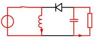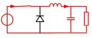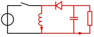 當(dāng)開關(guān)斷開時(shí),在電感Ls上產(chǎn)生反向電動(dòng)勢(shì),使二極管D從截止變成導(dǎo)通。電感給負(fù)載供電并對(duì)輸出電容充電,維持輸出電壓不變。