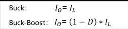 •Buck的電感電流利用率比Buck-Boost更高。在電感電流(IL)相同時(shí),Buck能輸出更大電流(IO)。