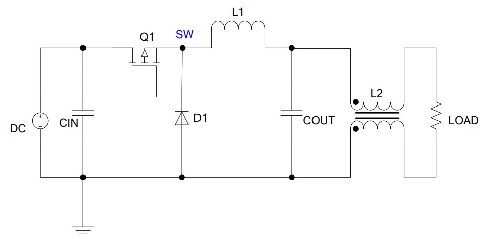 開關(guān)電源是通過功率管打開時給電感充電,電感儲能;功率管斷開時,電感釋放能量,實(shí)現(xiàn)電壓變換。