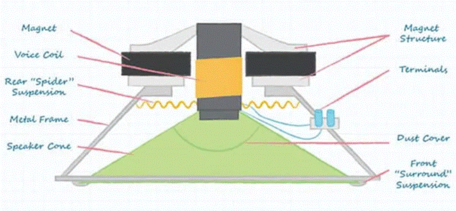 圖 1:標(biāo)準(zhǔn)揚聲器結(jié)構(gòu)(圖片來源:CUI Devices)