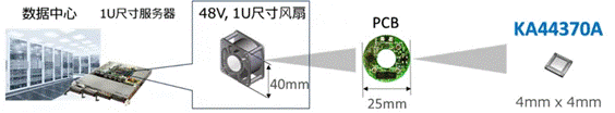 此次新推出的電機(jī)驅(qū)動器芯片,憑借新唐多年積累的高壓控制電路技術(shù),在小型4mm x 4mm QFN封裝中實現(xiàn)100V耐壓的控制電路,并大幅減少了降壓調(diào)節(jié)器等外置部件(相較常用的24V 產(chǎn)品減少53%的部件)。減少功耗損失的同時,也使其適用于1U尺寸(40mm x 40mm)的風(fēng)扇電機(jī),從而提升高密度數(shù)據(jù)處理。