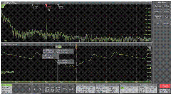 我們分別使用三種探頭測(cè)量這個(gè)交換器的電源紋波和噪聲。使用普通無(wú)源探頭和地線(xiàn)環(huán),測(cè)量電源噪聲的結(jié)果,最大峰峰值為7.97mV。使用有源差分探頭,測(cè)量待測(cè)物的電源噪聲,最大峰峰值為4.92mV。使用TPR電源軌探頭,電源紋波的峰峰值居然只有驚人的為714uV),遠(yuǎn)小于規(guī)范要求的3mV。這個(gè)產(chǎn)品的電源設(shè)計(jì)其實(shí)非常優(yōu)秀,但如果用常規(guī)的無(wú)源探頭或有源差分探頭,根本測(cè)不出它真實(shí)的噪聲水平。