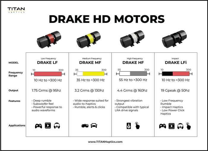 TacHammer DRAKE有四種不同的變體,為工程師提供了靈活性,可以在他們的集群中混合和匹配電機,以產(chǎn)生他們想要的觸覺效果。