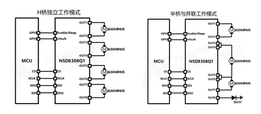 納芯微多通道半橋驅(qū)動(dòng)NSD8381支持多種馬達(dá)工作模式: