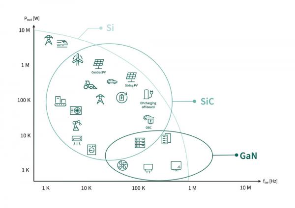在利用可再生能源進(jìn)行清潔發(fā)電的同時(shí),提升能效同樣是實(shí)現(xiàn)低碳化目標(biāo)的關(guān)鍵。這不僅需要設(shè)計(jì)出耗電量盡可能低的智能高效系統(tǒng),還需要最大限度地減少這些系統(tǒng)中每一個(gè)功率轉(zhuǎn)換環(huán)節(jié)的損耗。其中,后一個(gè)挑戰(zhàn)是本文討論的重點(diǎn)。在過(guò)去幾十年中,硅(Si)基功率半導(dǎo)體成功解決了這一難題。然而,近年來(lái)功率半導(dǎo)體技術(shù)的進(jìn)步,催生了碳化硅(SiC)和氮化鎵(GaN)等寬禁帶材料(WBG)技術(shù),它們?yōu)槎喾N應(yīng)用提供了獨(dú)特而又顯著的效率提升和功率密度優(yōu)勢(shì)。