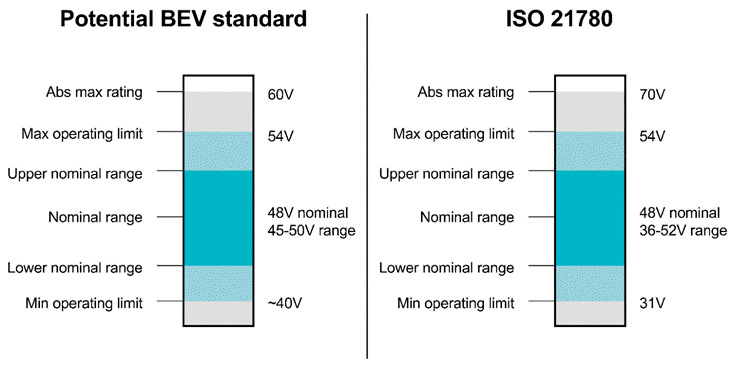 圖 8:潛在 BEV 標(biāo)準(zhǔn)和 ISO 21780 的瞬變電壓對(duì)比