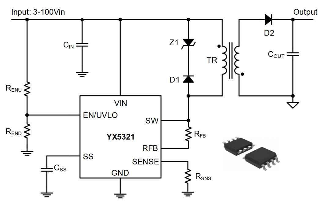 重磅“芯”品 : 3V-100V寬輸入電壓范圍、6W、高輸出電壓精度、高可靠性隔離電源芯片YX5321系列