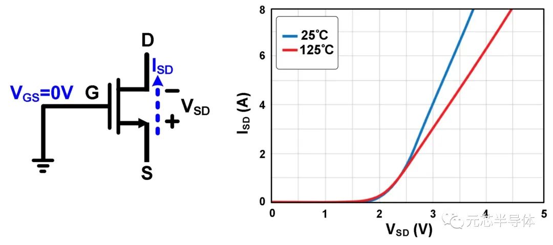 圖 6. 增強(qiáng)型 GaN 晶體管的反向傳導(dǎo)特性
