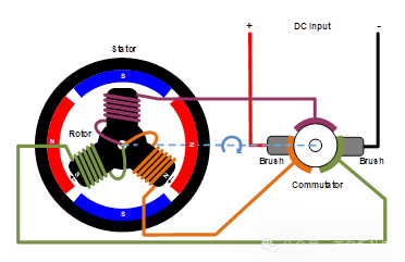 常用的直流電機有兩種:有刷電機和無刷電機(或稱BLDC電機)。顧名思義,有刷直流電機帶有電刷,電刷可以使電機換向并旋轉;而無刷電機則用電子控制取代了機械換向功能。